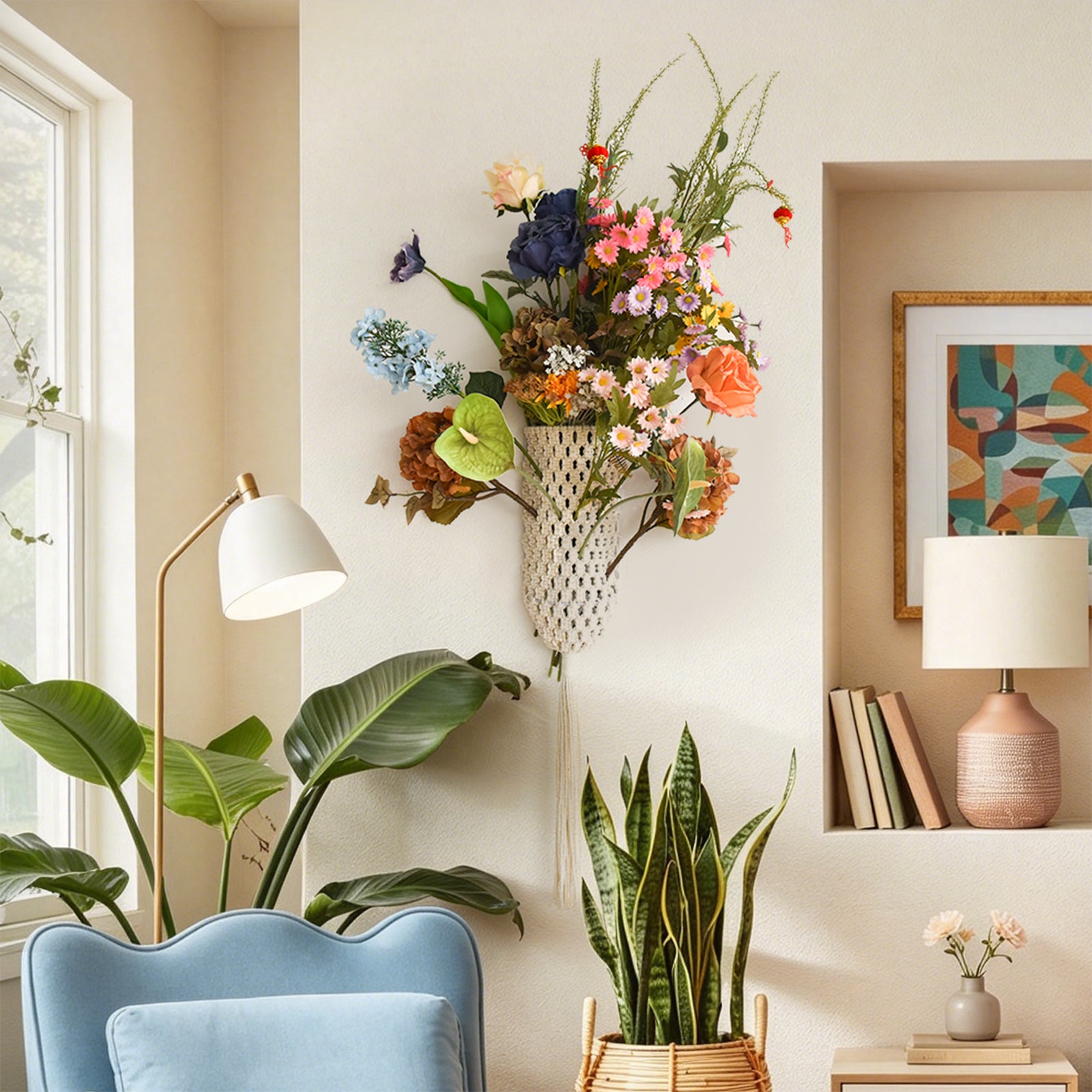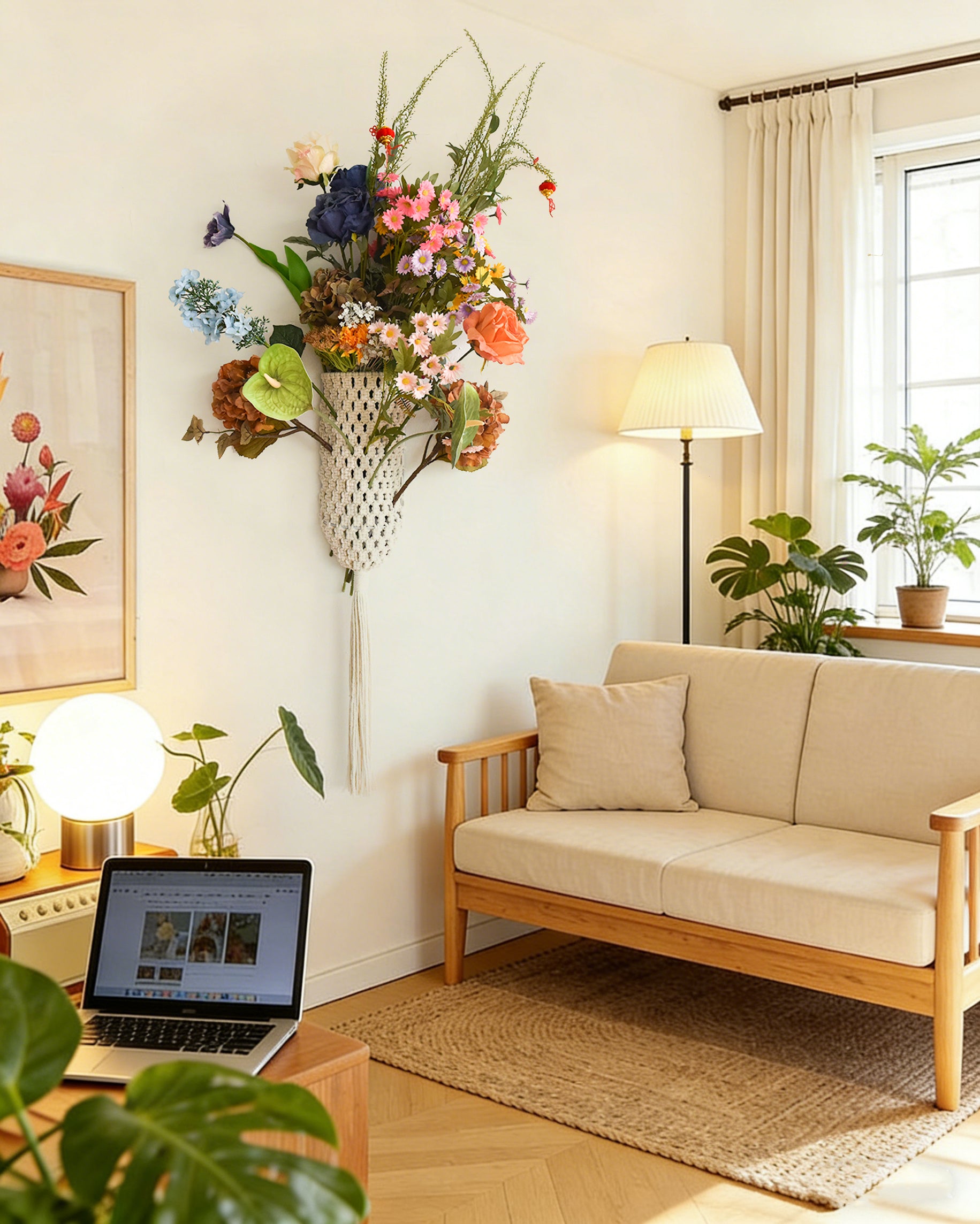 Boho Macrame Wall Hanging Floral Arrangement Woven Wall Decor