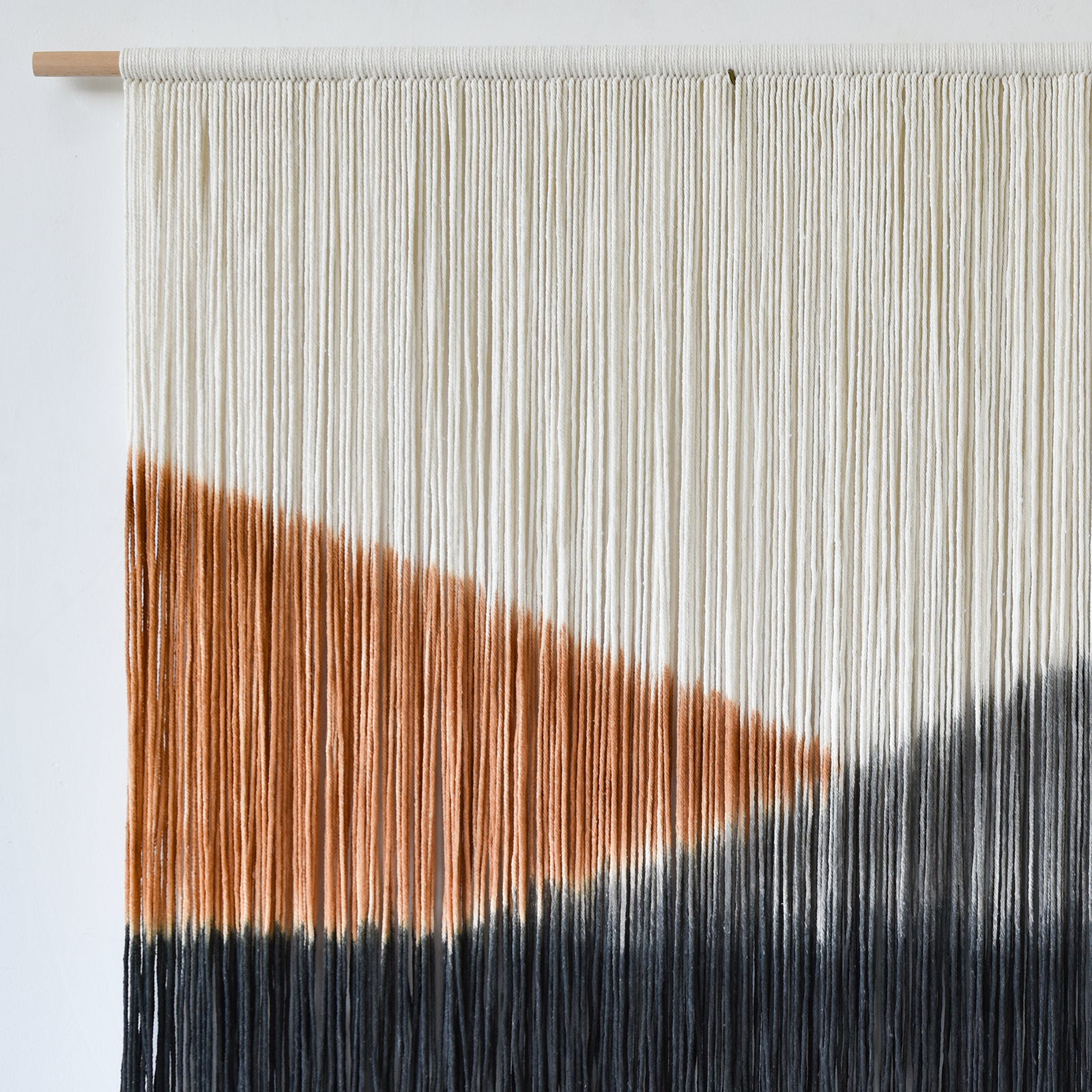 Macrame wall hanging large features a modern three-color dip-dye gradient that creates a bold yet balanced visual impact making it a perfect statement wall décor piece for contemporary, boho, interiors.