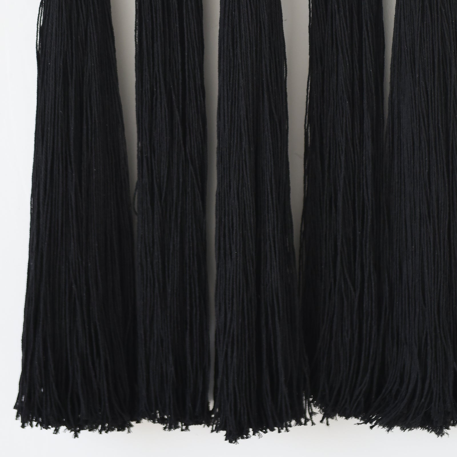 - Handwoven cotton wall art with 100% black cotton thread, designed in spherical knots and finished with wrapped accents. The layered construction provides depth without overwhelming the room.