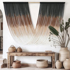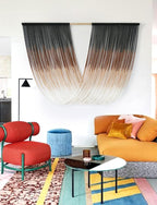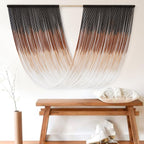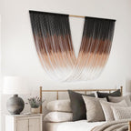 Large Macrame wall hanging design of the black and brown dip-dyed is inspired by the color gradients found in nature. Black symbolizes the depth and mystery of the night sky, while brown represents the stability and warmth of the earth.